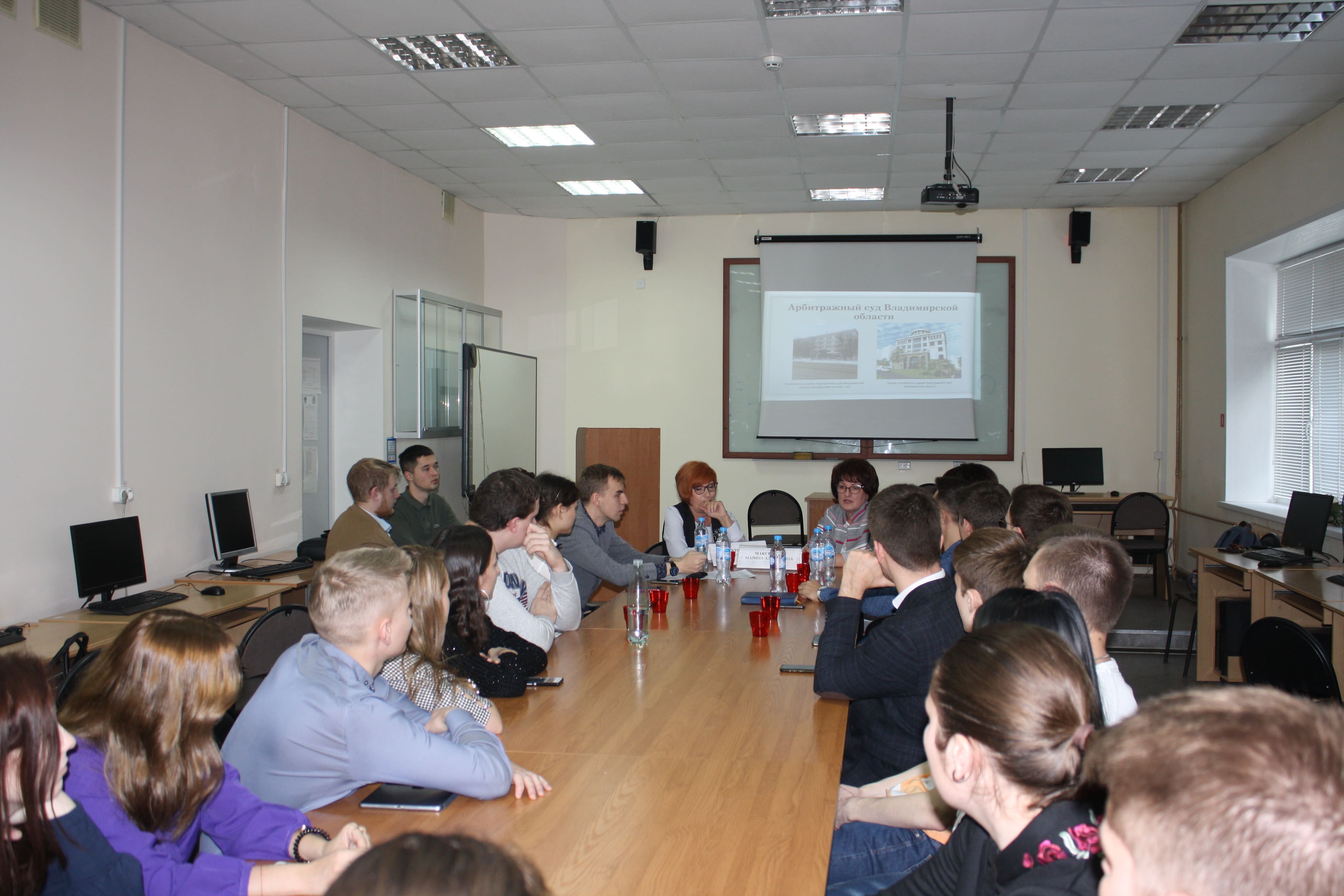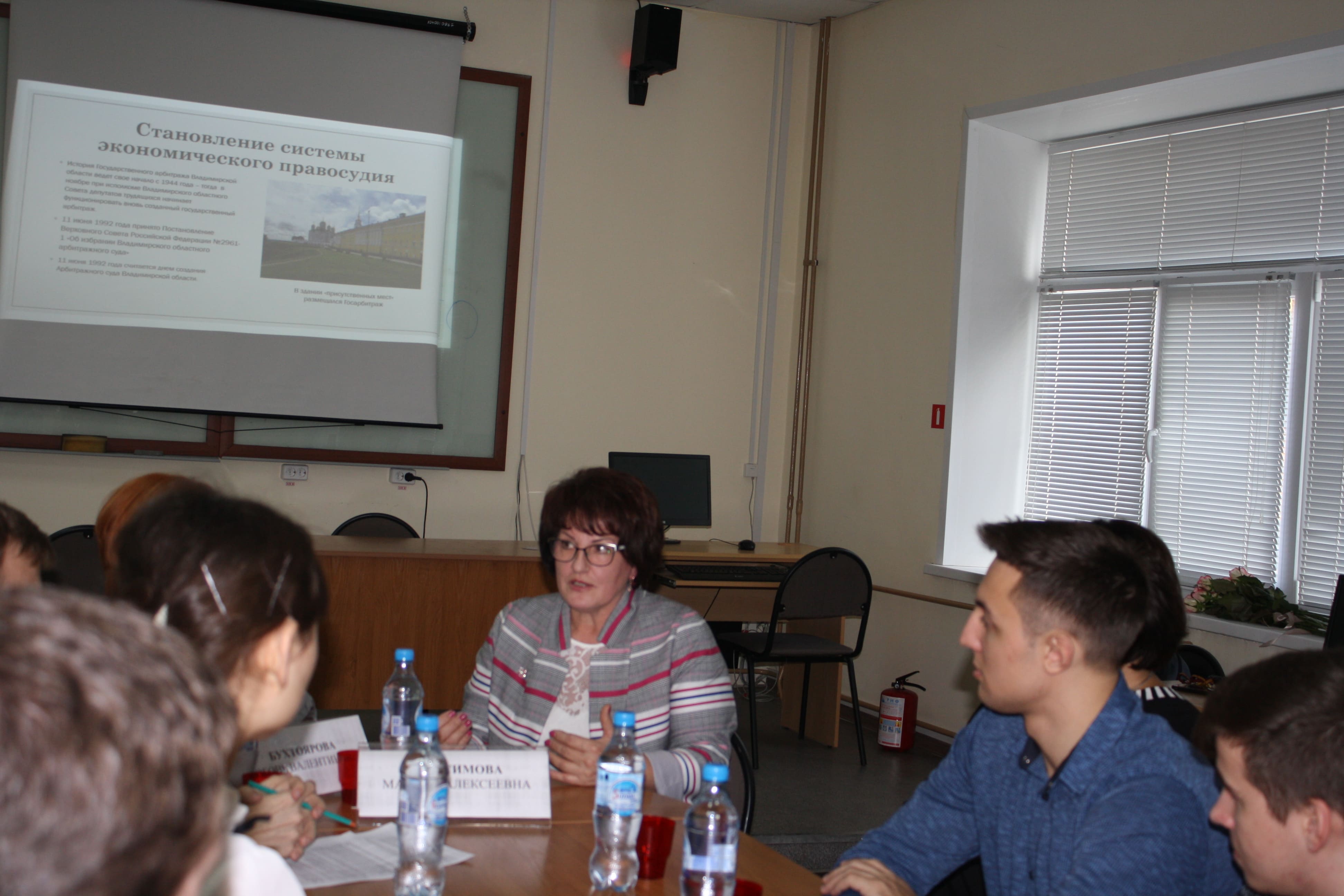 14 ноября в Юридическом институте ВлГУ прошла встреча с судьей Первого арбитражного апелляционного суда в отставке Любовью Валентиновной Бухтояровой и заместителем председателя Первого арбитражного апелляционного суда в отставке Мариной Алексеевной Максимовой.