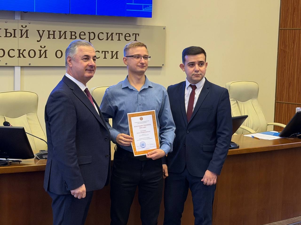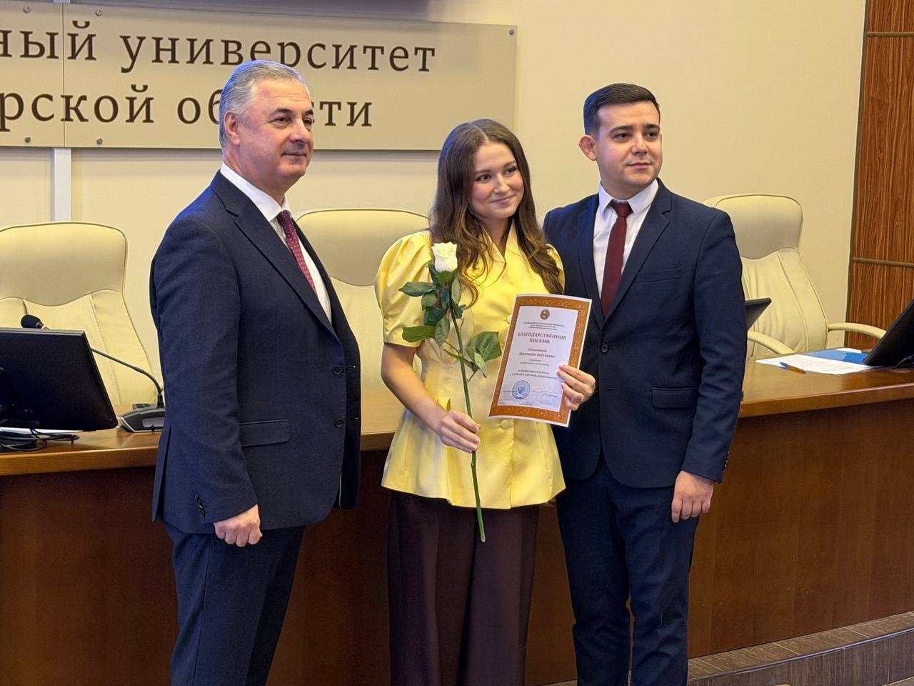 Церемонию награждения провели Председатель Законодательного Собрания Владимирской области, выпускница ВлГУ Ольга Хохлова, Заместитель министра молодежной политики региона Сергей Пушняк и ректор ВлГУ Анзор Саралидзе