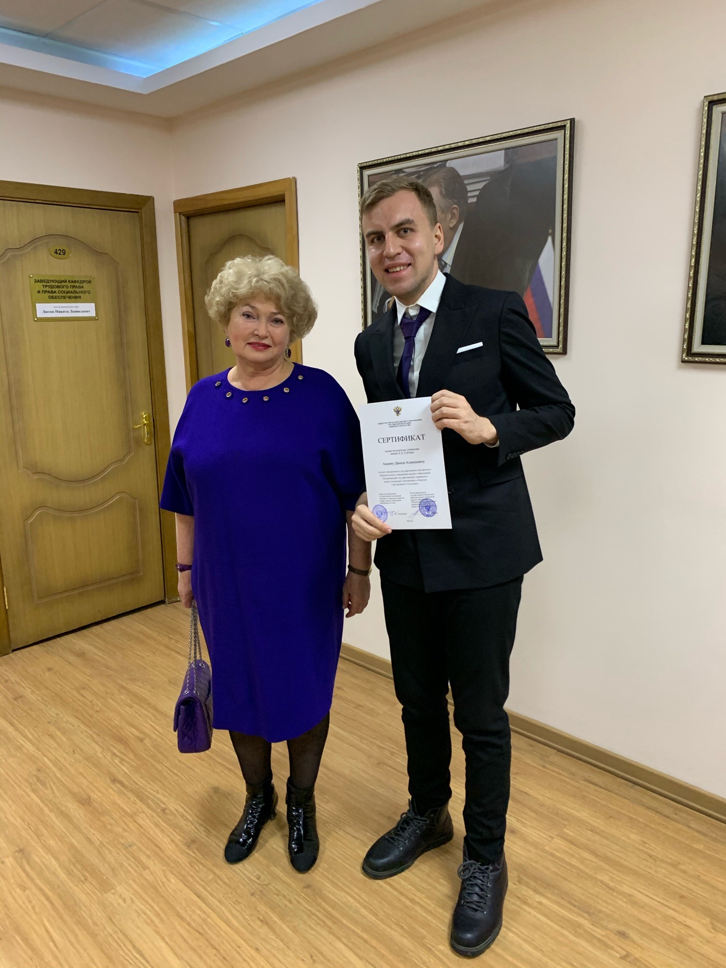 27 февраля 2020 года в Университете имени О.Е. Кутафина (МГЮА) состоялась торжественная церемония чествования победителей конкурса на назначение стипендий имени А.А. Собчака. В число стипендиатов вошёл студент Юридического института  Данила Авдеев.