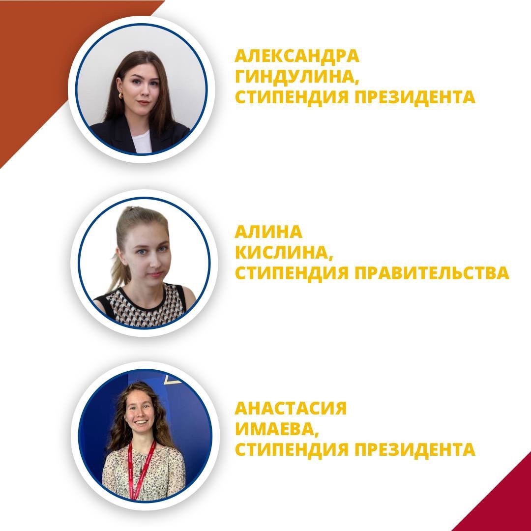 Александра Гиндулина, Анастасия Имаева и Алина Кислина вошли в число победительниц отбора и в течение учебного года будут получать федеральную выплату.