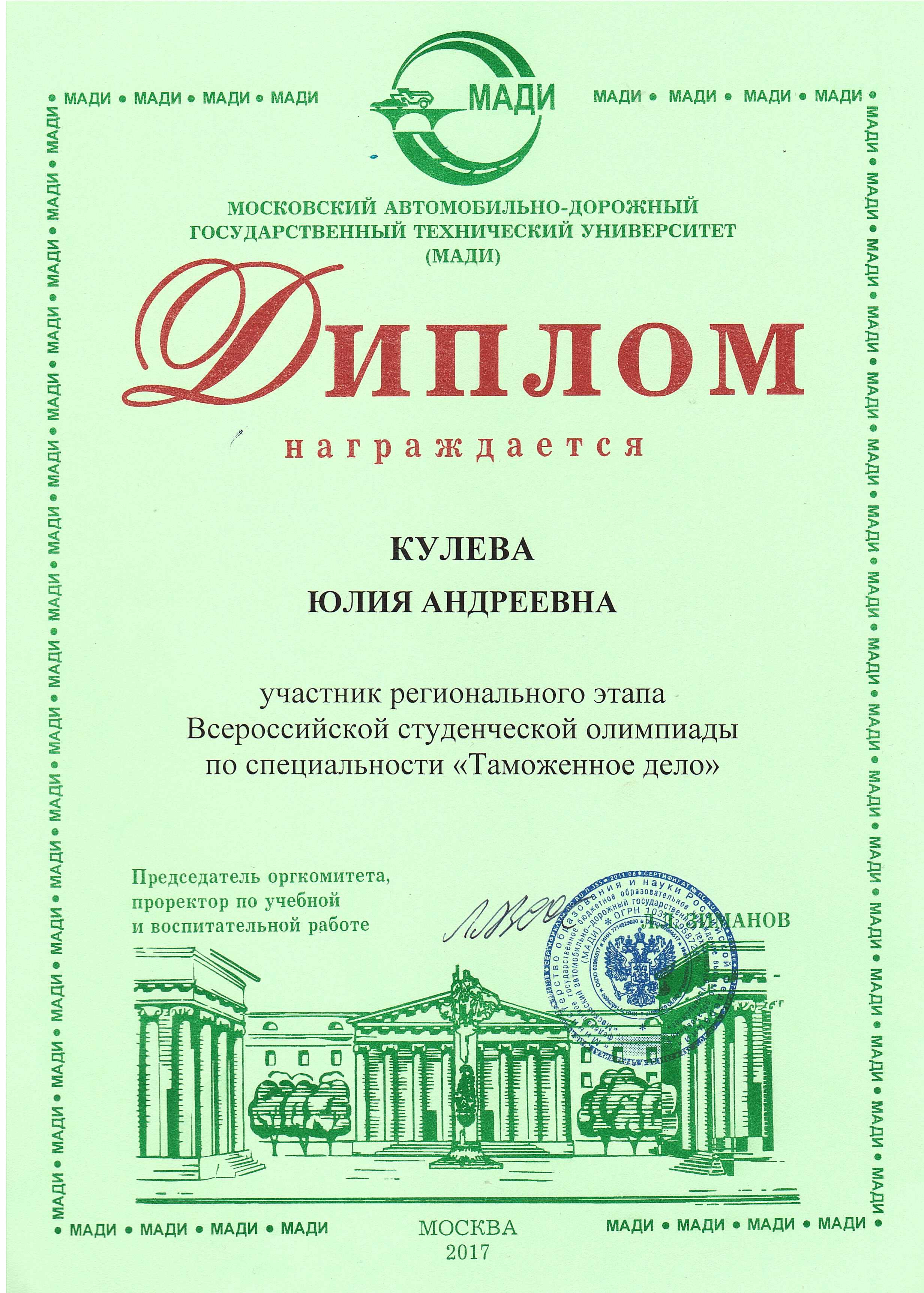 14-15 марта 2017 года студенты ВлГУ ЮИ специальности «Таможенное дело» приняли участие в  региональном этапе Всероссийской студенческой олимпиады по специальности «Таможенное дело» в Московском автомобильном дорожном государственном