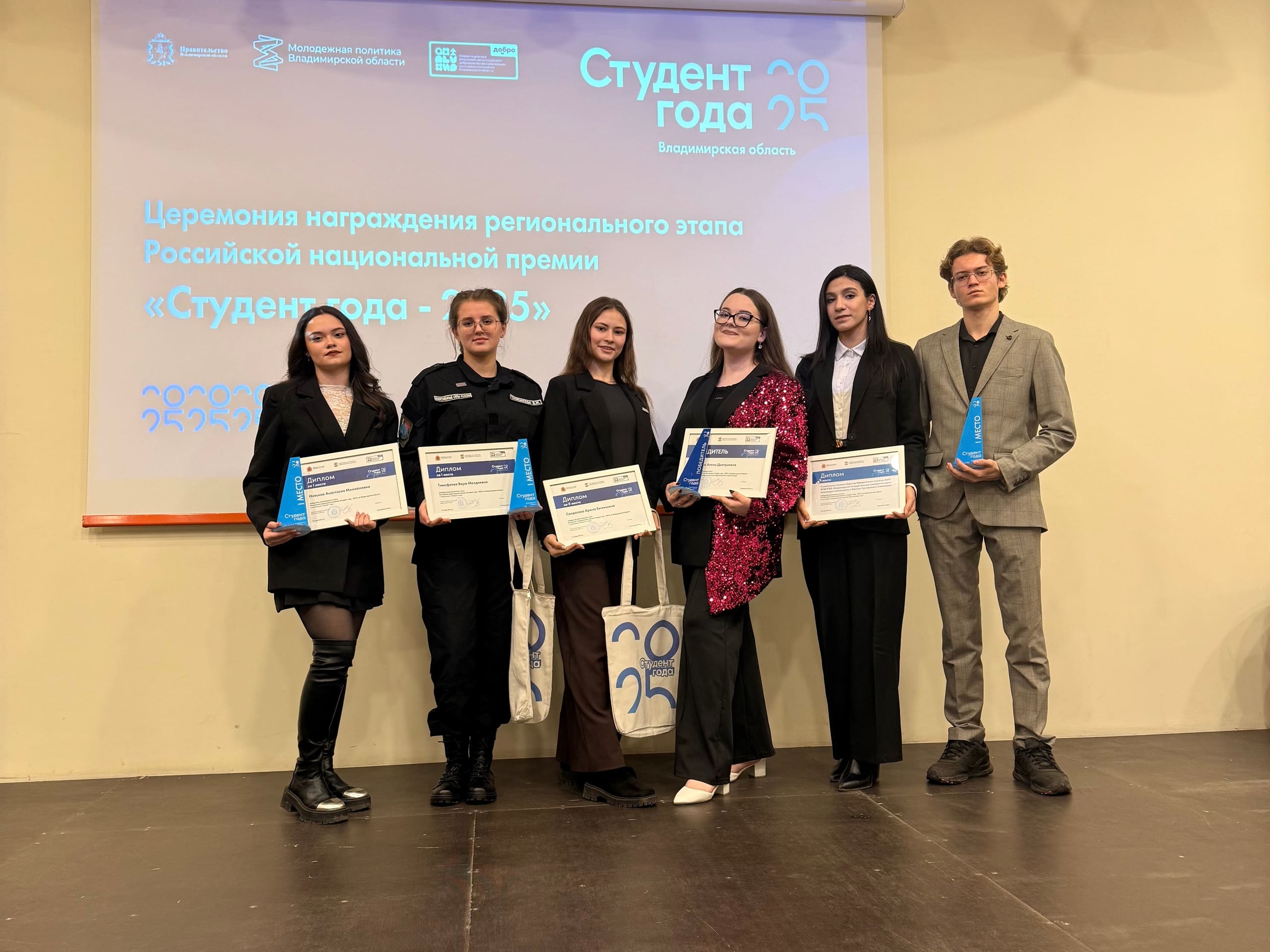Студенты ЮИ получили награды на региональном этапе российской национальной премии "Студент года-2025" во Владимирской области