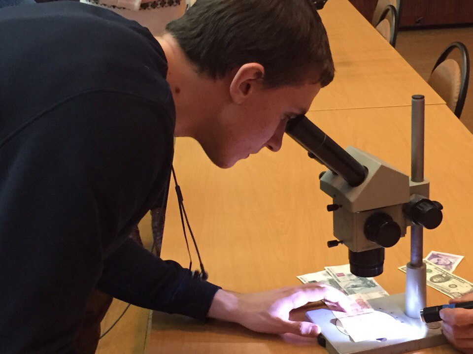 Ребята познакомились с работой специалистов Экспертно-криминалистического центра. Сотрудники рассказали об основных видах экспертизы, которые проводятся их центром. От результата их кропотливого труда во многом зависит исход дела. Студенты попробовали изымать следы отпечатков пальцев, различать настоящую купюру от поддельной. Последнее, к слову, пригодится и в повседневной жизни.